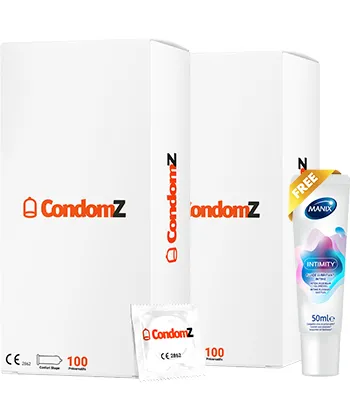 - 2 boites de préservatifs Condomz avec 1 tube de Gel Manix Intimity de 50 ml offert