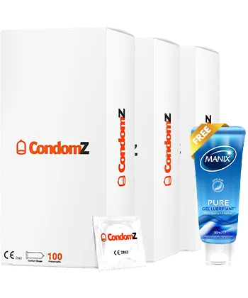 - 3 boites de préservatifs Condomz avec 1 tube Manix Pure gel en 80 ml