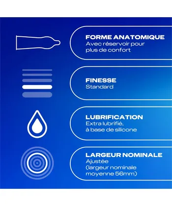 Pour votre confort, Durex Performance Booster possède une forme profilée pour une mise en place facile, et un lubrifiant léger qui masque l'odeur du latex.