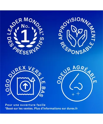 Fondée en 1929, Durex est la plus ancienne marque de condom : le nom de la marque vient d’un concept marketing qui présente les trois qualités principales qu’un préservatif doit avoir : DUrability (durabilité), REliability (fiabilité) et EXcellence (excellence). Leader de l’innovation, c’est Durex qui a inventé le premier préservatif parfumée (1995), le premier préservatif sans latex (1997), le premier préservatif perlé et nervuré (2001). Durex fabrique ses capotes avec des matières premières de la meilleure qualité, ils sont testés électroniquement afin de s’assurer qu’aucune déchirure n’est présent. Durex, c’est plus de 4 milliards de préservatifs vendus par an, fabriqués dans l’une des 17 usines du groupe : tu peux leur faire confiance ce sont les meilleurs. Teste aussi le gel lubrifiant Durex de haute qualité Play, à base d'eau, de silicone ou parfumés pour tous les plaisirs.