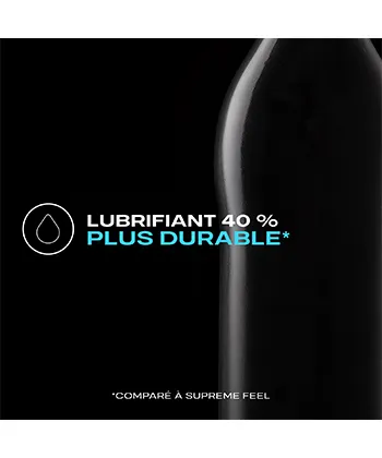 Le Supreme Feel Extra lubrifié associe une texture lisse et une glisse plus présente, +40% de gel lubrifiant comparé au Supreme Feel pour un contact plus doux.